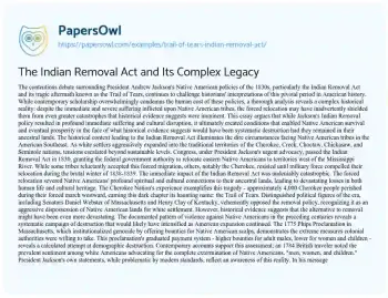 The Indian Removal Act and Its Complex Legacy. (2020, Sep 30). Retrieved from https://hub.papersowl.com/examples/trail-of-tears-indian-removal-act/