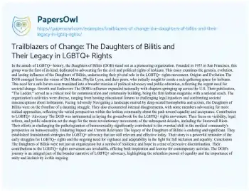 Trailblazers of Change: The Daughters of Bilitis and Their Legacy in LGBTQ+ Rights. (2023, Dec 01). Retrieved from https://hub.papersowl.com/examples/trailblazers-of-change-the-daughters-of-bilitis-and-their-legacy-in-lgbtq-rights/