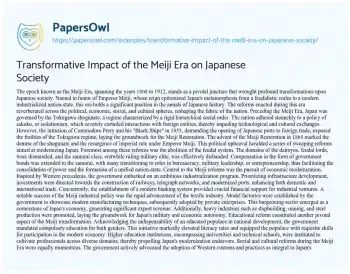 Transformative Impact of the Meiji Era on Japanese Society. (2024, May 21). Retrieved from https://hub.papersowl.com/examples/transformative-impact-of-the-meiji-era-on-japanese-society/
