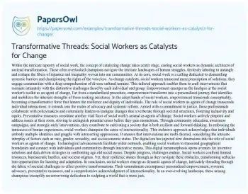 In conclusion, social workers emerge as dynamic agents of change, intricately threading through the fabric of societal challenges to effect positive transformations. Their commitment encompasses personalized empowerment, systemic advocacy, preventative measures, and a comprehensive acknowledgment of intersectionality. In an ever-evolving landscape, these unsung champions exemplify an unwavering dedication to sculpting a world that is more just, inclusive, and compassionate.