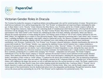 Victorian Gender Roles in Dracula. (2021, Apr 10). Retrieved from https://hub.papersowl.com/examples/transition-of-women-traditional-to-modern/