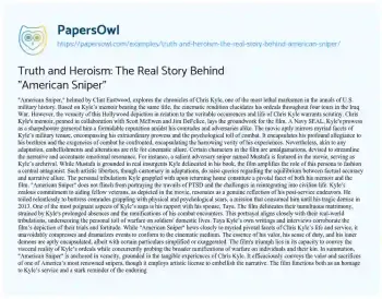 Truth and Heroism: The Real Story Behind "American Sniper". (2024, Jun 01). Retrieved from https://hub.papersowl.com/examples/truth-and-heroism-the-real-story-behind-american-sniper/