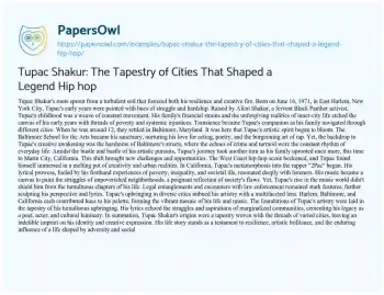 Tupac Shakur: The Tapestry of Cities That Shaped a Legend Hip hop. (2023, Dec 22). Retrieved from https://hub.papersowl.com/examples/tupac-shakur-the-tapestry-of-cities-that-shaped-a-legend-hip-hop/