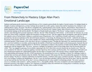 From Melancholy to Mastery: Edgar Allan Poe's Emotional Landscape. (2023, Aug 15). Retrieved from https://hub.papersowl.com/examples/two-adjectives-to-describe-poes-literary-works-dark-and-haunting/