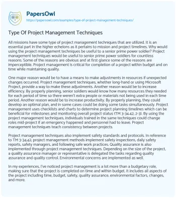 Type Of Project Management Techniques. (2022, Jun 27). Retrieved from https://hub.papersowl.com/examples/type-of-project-management-techniques/