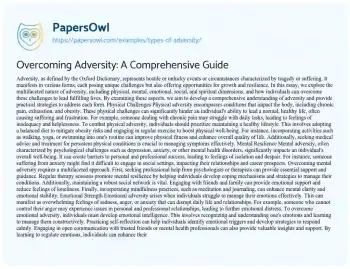 Overcoming Adversity: A Comprehensive Guide. (2020, May 08). Retrieved from https://hub.papersowl.com/examples/types-of-adversity/