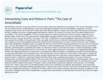 Interpreting Irony and Motive in Poe’s “The Cask of Amontillado”. (2021, Jun 26). Retrieved from https://hub.papersowl.com/examples/uncovering-the-cask/