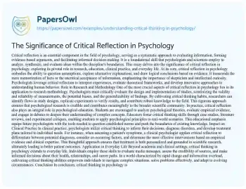 The Significance of Critical Reflection in Psychology. (2024, Jul 06). Retrieved from https://hub.papersowl.com/examples/understanding-critical-thinking-in-psychology/