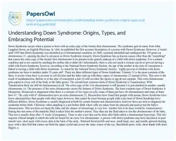 Understanding Down Syndrome: Origins, Types, and Embracing Potential. (2020, Apr 29). Retrieved from https://hub.papersowl.com/examples/understanding-down-syndrome-origins-types-and-embracing-potential/