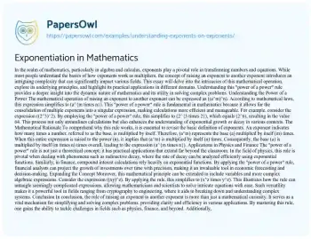 Exponentiation in Mathematics. (2024, Jun 17). Retrieved from https://hub.papersowl.com/examples/understanding-exponents-on-exponents/