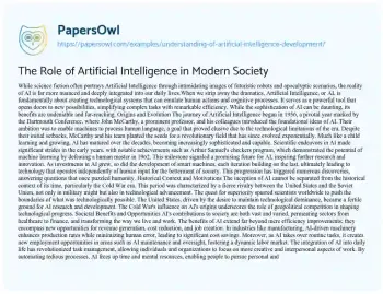 The Role of Artificial Intelligence in Modern Society. (2019, Nov 21). Retrieved from https://hub.papersowl.com/examples/understanding-of-artificial-intelligence-development/