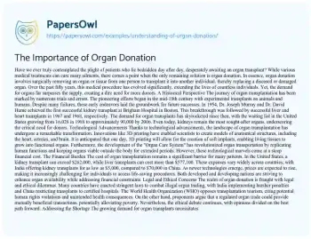The Importance of Organ Donation. (2019, Jul 04). Retrieved from https://hub.papersowl.com/examples/understanding-of-organ-donation/