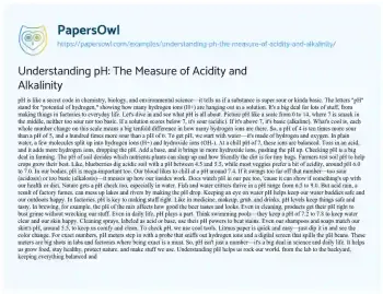 Understanding pH: The Measure of Acidity and Alkalinity. (2024, Jul 16). Retrieved from https://hub.papersowl.com/examples/understanding-ph-the-measure-of-acidity-and-alkalinity/