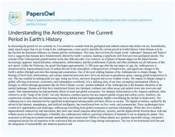 Understanding the Anthropocene: The Current Period in Earth's History. (2024, Jul 16). Retrieved from https://hub.papersowl.com/examples/understanding-the-anthropocene-the-current-period-in-earths-history/