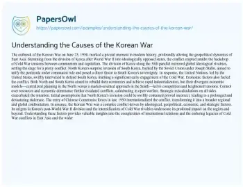 Understanding the Causes of the Korean War. (2024, Jun 28). Retrieved from https://hub.papersowl.com/examples/understanding-the-causes-of-the-korean-war/
