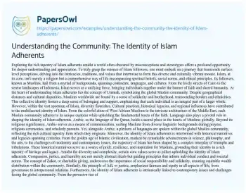 Understanding the Community: The Identity of Islam Adherents
