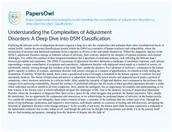 Understanding the Complexities of Adjustment Disorders: A Deep Dive into DSM Classification. (2024, Jun 01). Retrieved from https://hub.papersowl.com/examples/understanding-the-complexities-of-adjustment-disorders-a-deep-dive-into-dsm-classification/
