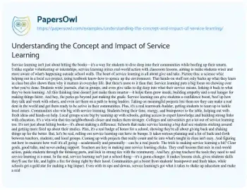 Understanding the Concept and Impact of Service Learning. (2024, Jul 16). Retrieved from https://hub.papersowl.com/examples/understanding-the-concept-and-impact-of-service-learning/