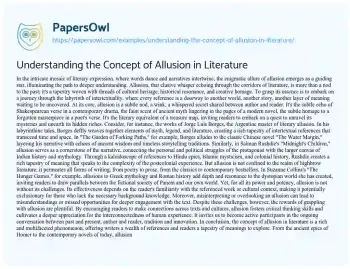 Understanding the Concept of Allusion in Literature. (2024, May 21). Retrieved from https://hub.papersowl.com/examples/understanding-the-concept-of-allusion-in-literature/