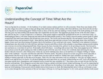 This essay about the concept of hours explores their origin significance and impact on human life. It traces the historical development of dividing the day into 24 hours beginning with ancient Egyptian and Babylonian timekeeping systems. The essay discusses how hours structure social and economic activities emphasizing their role during the Industrial Revolution and in modern work schedules. It also examines the cultural and well-being implications of rigid time structures highlighting the rise of flexible work arrangements. Additionally the essay considers the influence of technology on our perception and management of hours in an interconnected world.