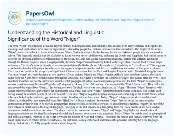 Understanding the Historical and Linguistic Significance of the Word "Niger". (2024, May 21). Retrieved from https://hub.papersowl.com/examples/understanding-the-historical-and-linguistic-significance-of-the-word-niger/