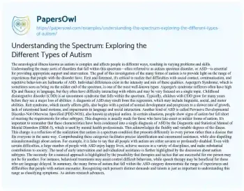 Understanding the Spectrum: Exploring the Different Types of Autism. (2023, Dec 01). Retrieved from https://hub.papersowl.com/examples/understanding-the-spectrum-exploring-the-different-types-of-autism/