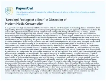 "Unedited Footage of a Bear": A Dissection of Modern Media Consumption. (2023, Oct 10). Retrieved from https://hub.papersowl.com/examples/unedited-footage-of-a-bear-a-dissection-of-modern-media-consumption/