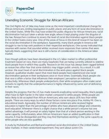 Unending Economic Struggle for African Africans. (2020, Sep 23). Retrieved from https://hub.papersowl.com/examples/unending-economic-struggle-for-african-africans/