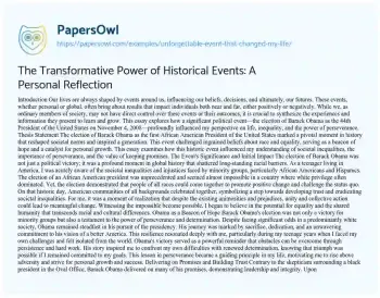 The Transformative Power of Historical Events: A Personal Reflection. (2021, Apr 25). Retrieved from https://hub.papersowl.com/examples/unforgettable-event-that-changed-my-life/