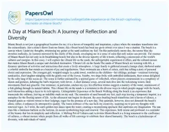 A Day at Miami Beach: A Journey of Reflection and Diversity. (2023, Aug 09). Retrieved from https://hub.papersowl.com/examples/unforgettable-experience-at-the-beach-captivating-moments-at-miami-beach/