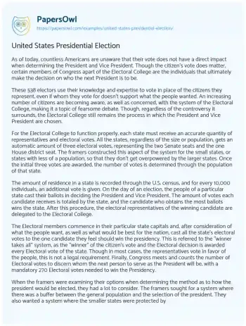 United States Presidential Election. (2020, Apr 27). Retrieved from https://hub.papersowl.com/examples/united-states-presidential-election/
