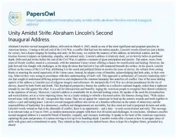 Unity Amidst Strife: Abraham Lincoln's Second Inaugural Address. (2023, Dec 01). Retrieved from https://hub.papersowl.com/examples/unity-amidst-strife-abraham-lincolns-second-inaugural-address/