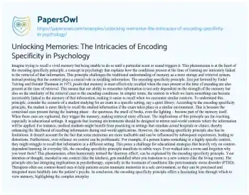 Unlocking Memories: The Intricacies of Encoding Specificity in Psychology. (2023, Nov 17). Retrieved from https://hub.papersowl.com/examples/unlocking-memories-the-intricacies-of-encoding-specificity-in-psychology/
