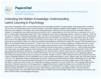 Unlocking the Hidden Knowledge: Understanding Latent Learning in Psychology