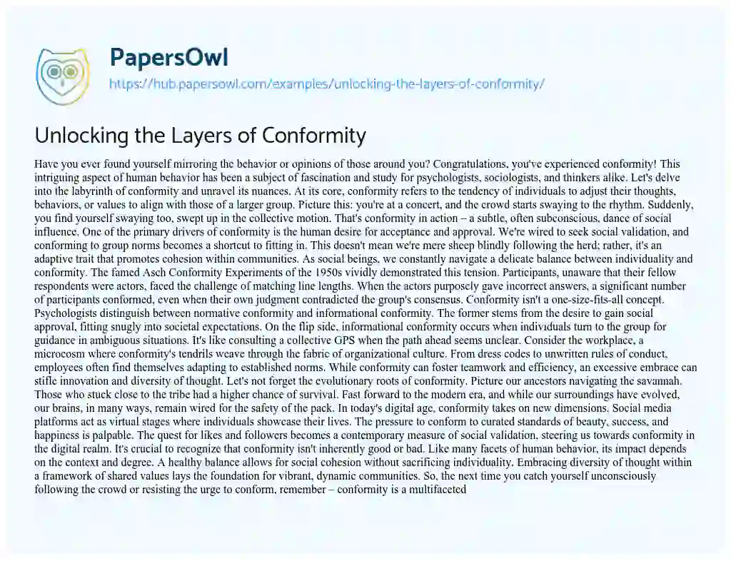 Unlocking the Layers of Conformity. (2024, Jan 26). Retrieved from https://hub.papersowl.com/examples/unlocking-the-layers-of-conformity/