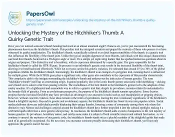 Unlocking the Mystery of the Hitchhiker's Thumb: A Quirky Genetic Trait. (2024, Jan 26). Retrieved from https://hub.papersowl.com/examples/unlocking-the-mystery-of-the-hitchhikers-thumb-a-quirky-genetic-trait/