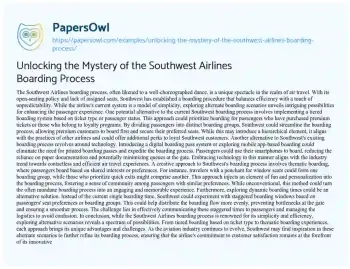 Unlocking the Mystery of the Southwest Airlines Boarding Process. (2023, Nov 24). Retrieved from https://hub.papersowl.com/examples/unlocking-the-mystery-of-the-southwest-airlines-boarding-process/