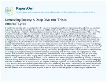 Unmasking Society: A Deep Dive into "This Is America" Lyrics. (2023, Oct 16). Retrieved from https://hub.papersowl.com/examples/unmasking-society-a-deep-dive-into-this-is-america-lyrics/