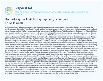 Unmasking the Trailblazing Ingenuity of Ancient China Marvels. (2023, Dec 01). Retrieved from https://hub.papersowl.com/examples/unmasking-the-trailblazing-ingenuity-of-ancient-china-marvels/