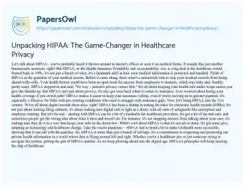 Unpacking HIPAA: The Game-Changer in Healthcare Privacy. (2024, Feb 01). Retrieved from https://hub.papersowl.com/examples/unpacking-hipaa-the-game-changer-in-healthcare-privacy/