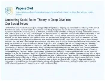 Unpacking Social Roles Theory: A Deep Dive into Our Social Selves. (2023, Dec 15). Retrieved from https://hub.papersowl.com/examples/unpacking-social-roles-theory-a-deep-dive-into-our-social-selves/