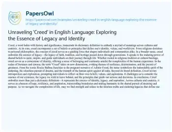 This essay delves into the multifaceted meanings of the word ‘creed,’ extending beyond its dictionary definition to explore its rich cultural, religious, and personal connotations. From shaping individual identities to serving as a cornerstone of legacy and belief, ‘creed’ emerges as a powerful force that unites, inspires, and defines human experiences. Drawing parallels with the cinematic portrayal in the Rocky Balboa franchise, the essay invites readers to reflect on the essence of their own beliefs, values, and aspirations. Join this exploration of language, identity, and inspiration as we unravel the profound significance embedded in the word ‘creed’ within the vast tapestry of the English language. On PapersOwl, there’s also a selection of free essay templates associated with English Language.