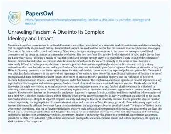 Unraveling Fascism: A Dive into Its Complex Ideology and Impact. (2024, Jan 09). Retrieved from https://hub.papersowl.com/examples/unraveling-fascism-a-dive-into-its-complex-ideology-and-impact/