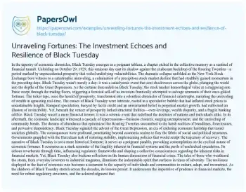Unraveling Fortunes: The Investment Echoes and Resilience of Black Tuesday. (2024, Jan 26). Retrieved from https://hub.papersowl.com/examples/unraveling-fortunes-the-investment-echoes-and-resilience-of-black-tuesday/