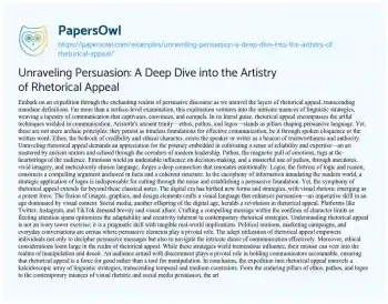 Unraveling Persuasion: A Deep Dive into the Artistry of Rhetorical Appeal. (2024, Feb 01). Retrieved from https://hub.papersowl.com/examples/unraveling-persuasion-a-deep-dive-into-the-artistry-of-rhetorical-appeal/