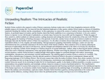 Unraveling Realism: The Intricacies of Realistic Fiction. (2024, Jan 16). Retrieved from https://hub.papersowl.com/examples/unraveling-realism-the-intricacies-of-realistic-fiction/