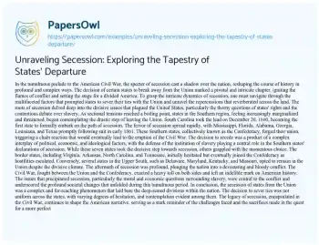 Unraveling Secession: Exploring the Tapestry of States' Departure. (2024, Mar 01). Retrieved from https://hub.papersowl.com/examples/unraveling-secession-exploring-the-tapestry-of-states-departure/