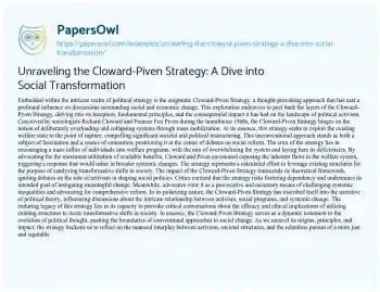 Unraveling the Cloward-Piven Strategy: A Dive into Social Transformation. (2024, Mar 02). Retrieved from https://hub.papersowl.com/examples/unraveling-the-cloward-piven-strategy-a-dive-into-social-transformation/