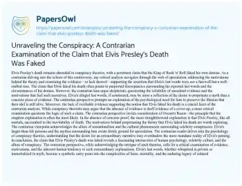 Unraveling the Conspiracy: A Contrarian Examination of the Claim that Elvis Presley's Death Was Faked. (2023, Dec 22). Retrieved from https://hub.papersowl.com/examples/unraveling-the-conspiracy-a-contrarian-examination-of-the-claim-that-elvis-presleys-death-was-faked/