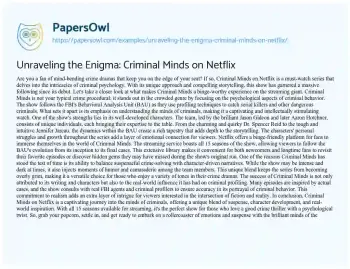 Unraveling the Enigma: Criminal Minds on Netflix. (2024, Jan 26). Retrieved from https://hub.papersowl.com/examples/unraveling-the-enigma-criminal-minds-on-netflix/